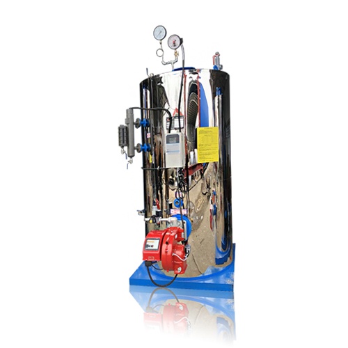 燃油氣蒸汽發(fā)生器為立式內(nèi)燃火管蒸汽發(fā)生器。燃燒器燃燒產(chǎn)生的高溫煙氣由底部依次沖刷先進回程爐膽,二回程煙管、然后由下部煙室、三回程煙管經(jīng)煙囪排入大氣。蒸汽發(fā)生器配置技術(shù)性能良好的工業(yè)燃燒器,采用了燃燒自動比例調(diào)節(jié),給水自動調(diào)節(jié),程序啟停,全自動運行等先進技術(shù),并具有高低水位報警和極低水位、超高汽壓、熄火等自動保護功能。該型蒸汽發(fā)生器具有結(jié)構(gòu)緊湊、相當、操作簡便、安裝迅速、污染少、噪音低、效率高等特點。